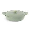 28cm žalia dengta keptuvė pagaminta iš ketaus, kuris puikiai sulaiko šilumą: tai puikus pasirinkimas lėtam maisto ruošimui ir gausiems troškiniams, ruošiamiems orkaitėje arba ant viryklės. Dangtis sulaiko drėgmę, o maži vidiniai iškilimai užtikrina, kad išgaravusios sultys patektų į maistą ir būtų itin skanu. Šioje keptuvėje reikia tik nedaug aliejaus: puikus pasirinkimas kepimui su mažu riebalų kiekiu. Plačios rankenos, kad keptuvę būtų galima saugiai suimti, net jei dėvite pirštines ar naudojate rankšluosčius.
